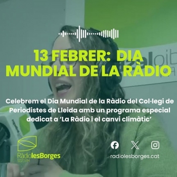 Avui, 13 de febrer, es commemora el Dia Mundial de la Ràdio 2025, i des de Ràdio les Borges hem fet un programa especial per celebrar aquesta jornada dedicada al nostre mitjà, que s'ha emès durant la jornada de 12 hores en directe de ràdio que, enguany, han tingut lloc a la sala d'actes de la Diputació de Lleida, organitzada pel Col·legi de Periodistes de Catalunya-Demarcació de Lleida per desè any consecutiu. Nosaltres ja en fa set que hi participem.